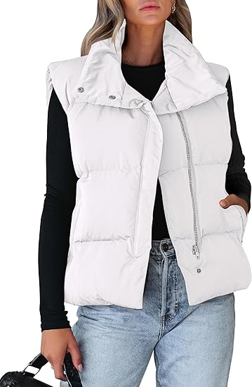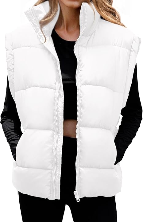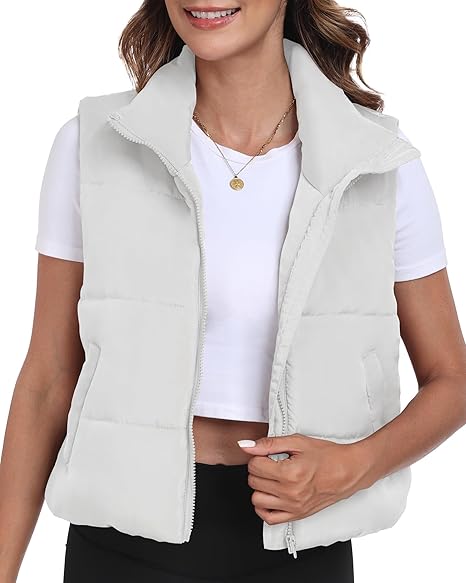 Puffer Vest for Women Winter Outwear Jacket Cropped Sleeveless Lightweight Fashion Fall Coat with Pockets