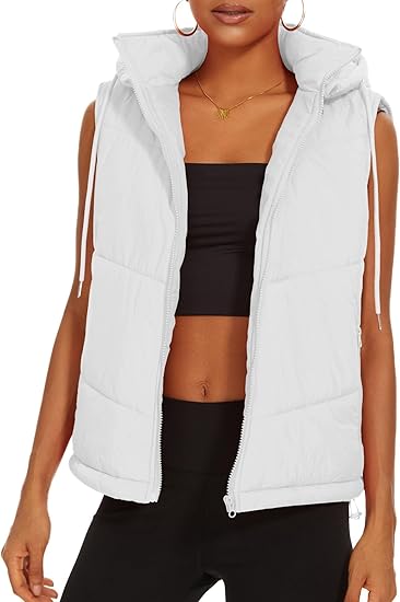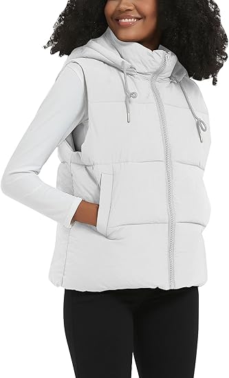 Puffer Vests for Women Winter Sleeveless Hooded Jacket Quilted Zip Up Stand Collar Gilet with Pocket Loose Fit