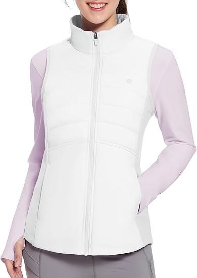 Womens Puffer Softshell Vest Hooded Lightweight Insulated Hybrid Down Jacket Full Zip Running Vest