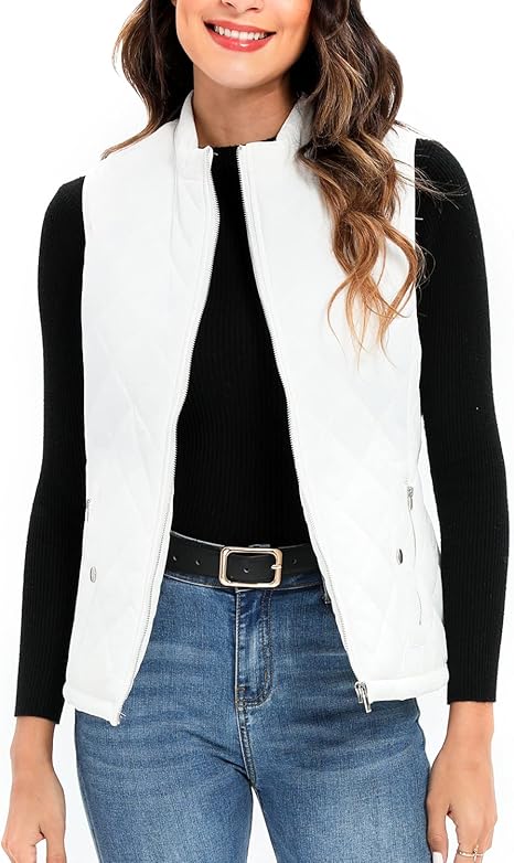 Women Puffer Vest Sleeveless Zip Up Stand Collar Quilted Lightweight Jacket Winter Warm Puffer Padded Down Outerwear