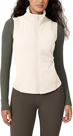 Women's Padded Vest with Pockets Athletic Stand Collar Sleeveless Warm Outerwear Zip Up Gilet