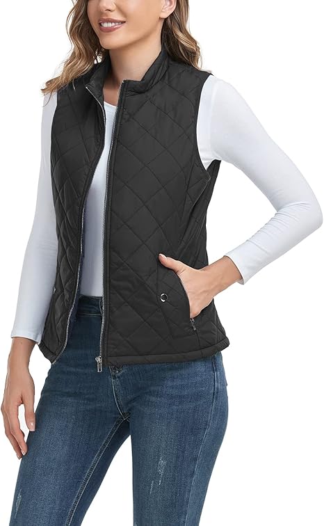 2024 Upgraded, Women's Outwear Vest With One Inner Pocket - Stand Collar Lightweight Zip Quilted Vest for Women…