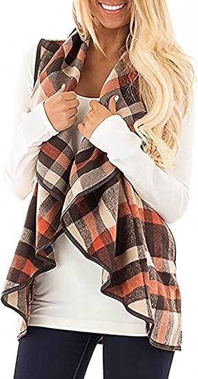 Womens Buffalo Plaid Vest Casual Lapel Open Front Sleeveless Cardigan Jacket Coat with Pockets