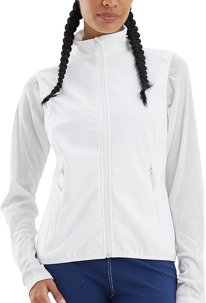 Women's Softshell Vest Athletic Warm Up Sleeveless Scrub Jacket Zip Pockets Cycling Running Golf