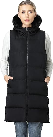 Women's Long Puffer Vest Winter Quilted Hooded Sleeveless Zip Up Long Jacket Vest Gilet